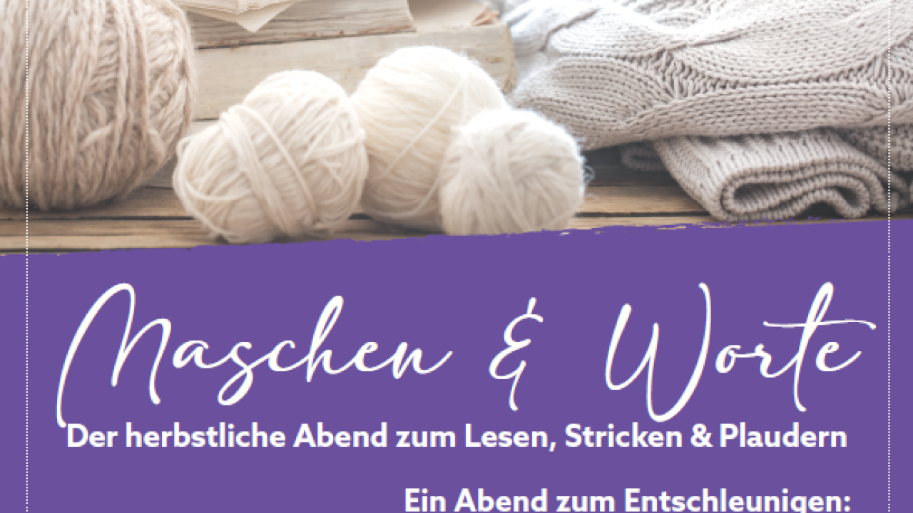 13.11.2025 Maschen & Worte Der herbstliche Abend zum Lesen, Stricken & Plaudern. Ein Abend zum Entschleunigen:Bring dein Strickzeug oder dein aktuelles Buch mit,genieße eine Tasse Tee und die Gesellschaft anderer.Herbstlich. Gemütlich. Gemeinsam.